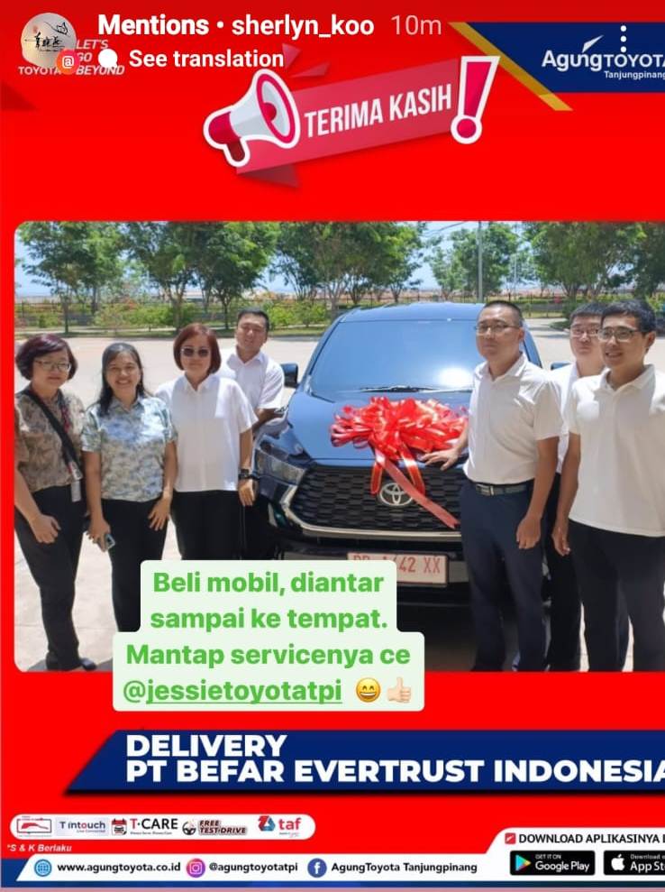 - Tanyakan Prosedur Dan Syarat Cara Pembelian Tunai Maupun Kredit Pada Sales Marketing Toyota Tanjung Pinang Untuk Kategori Customer Perorangan, Perusahaan Swasta Maupun Dinas Pemerintahan.